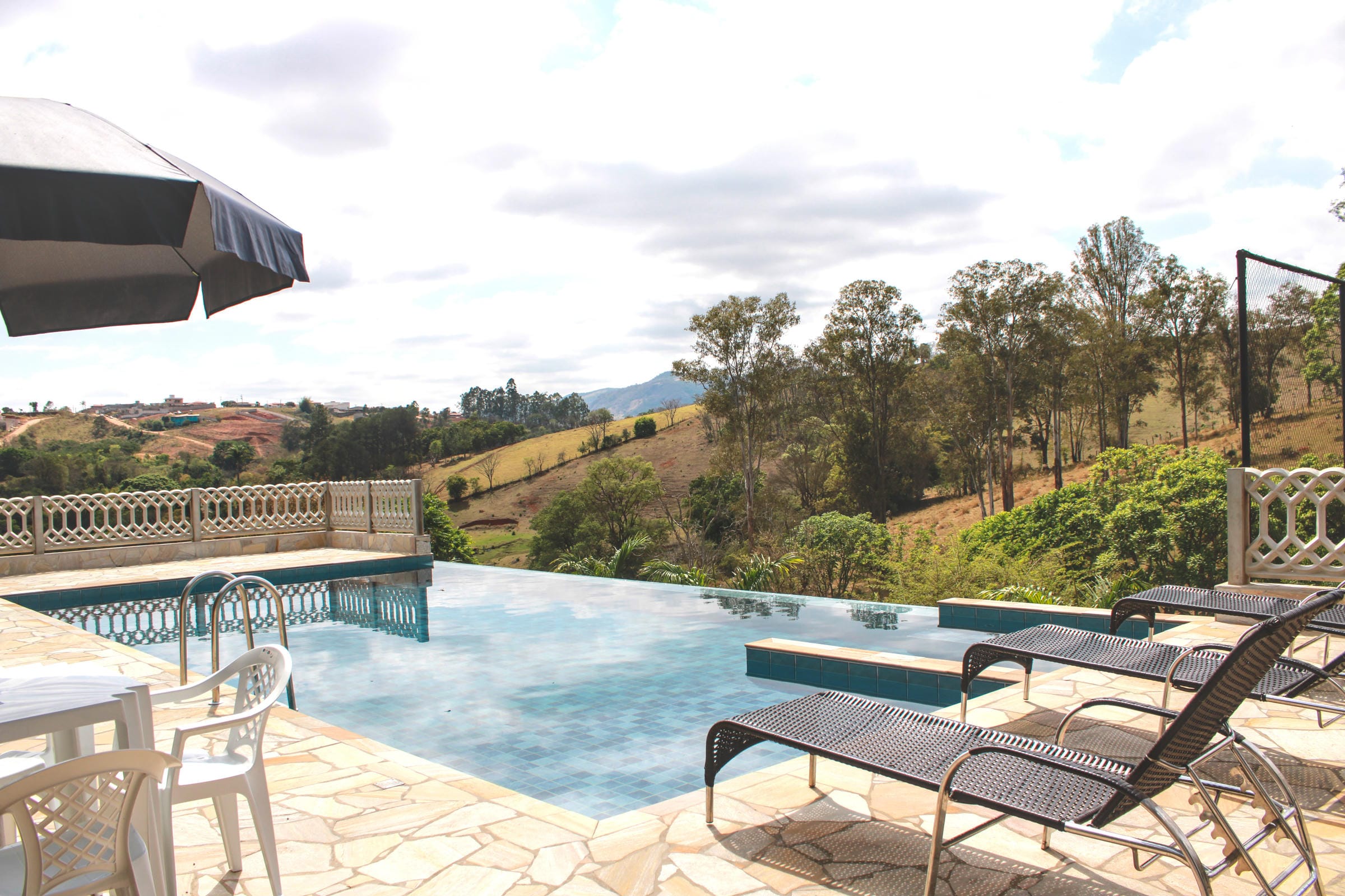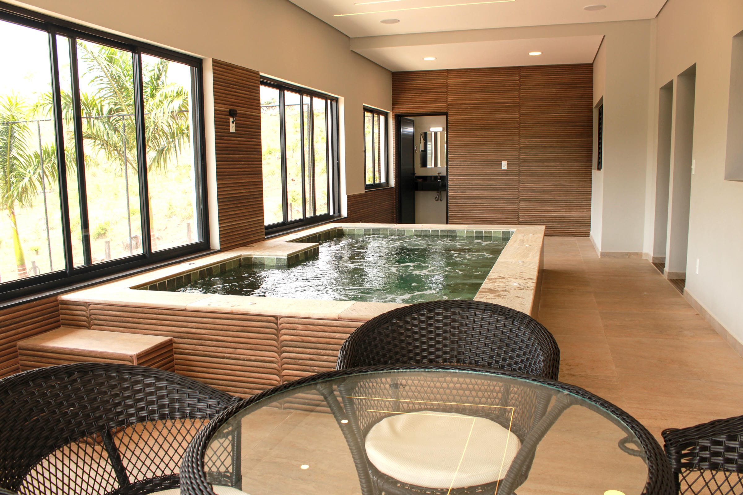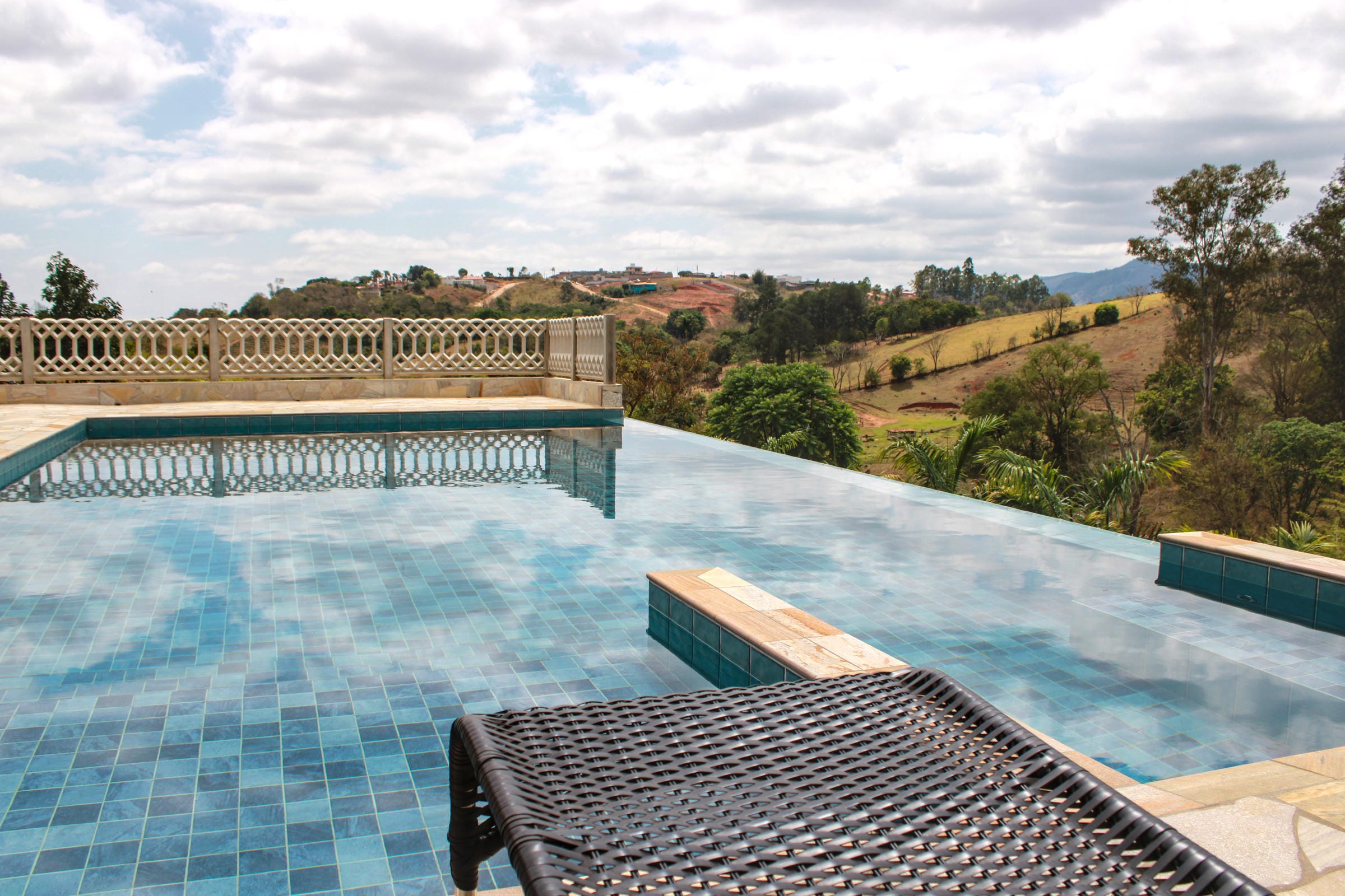Piscina com borda infinita e hidromassagem, para aproveitar o sol com estilo;