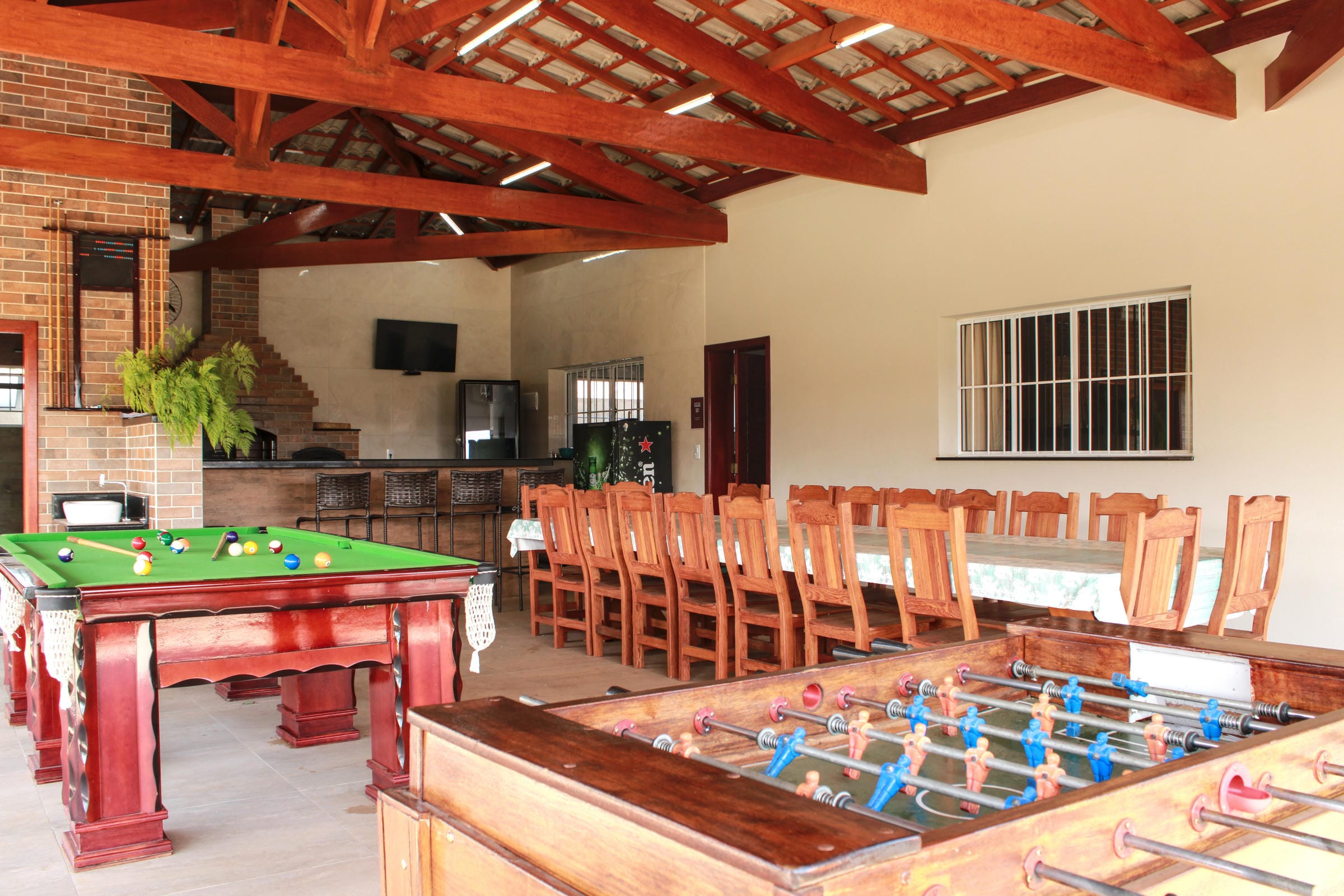 Mesa de jogos (pebolim e sinuca) para reunir a galera;