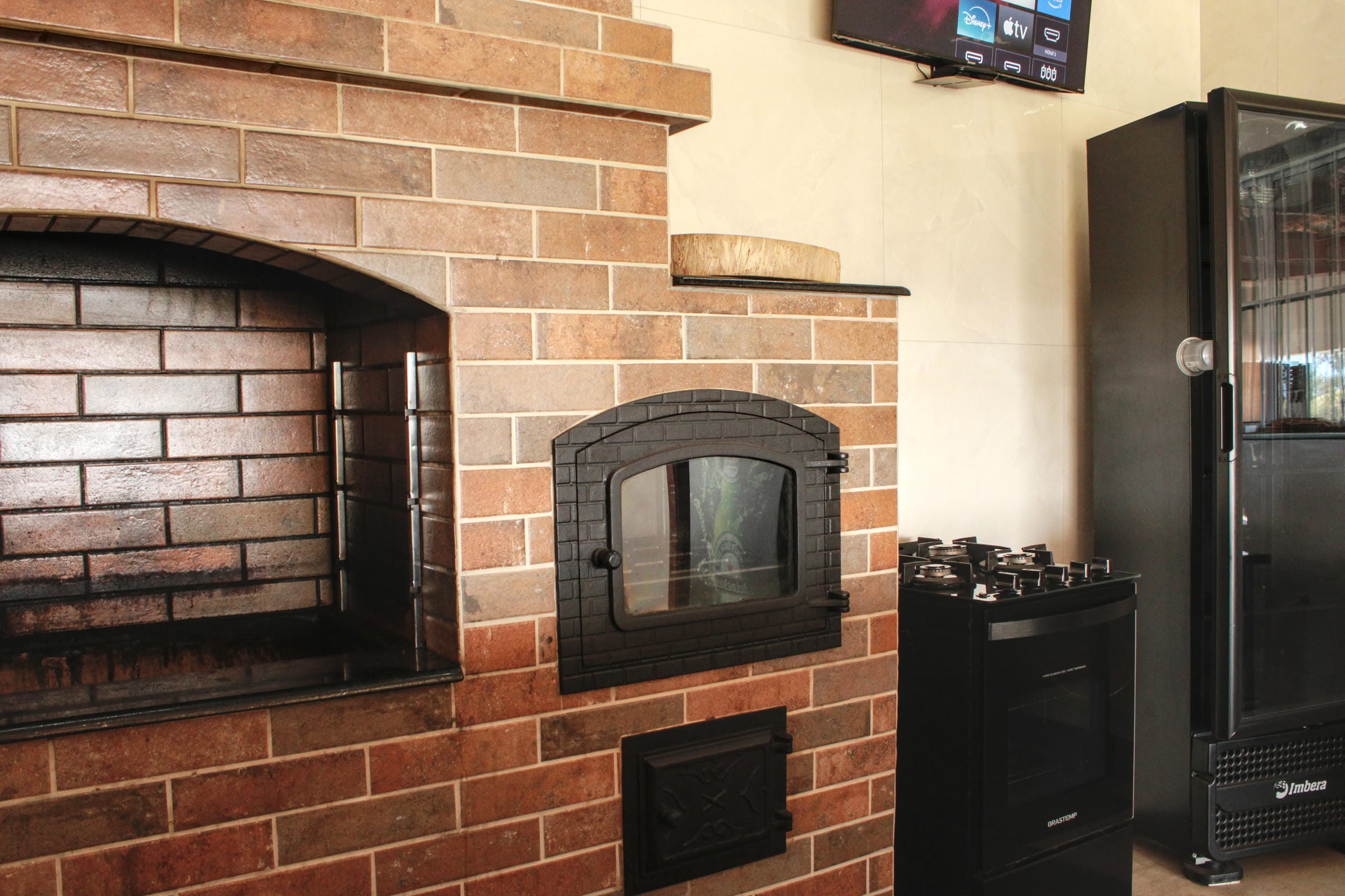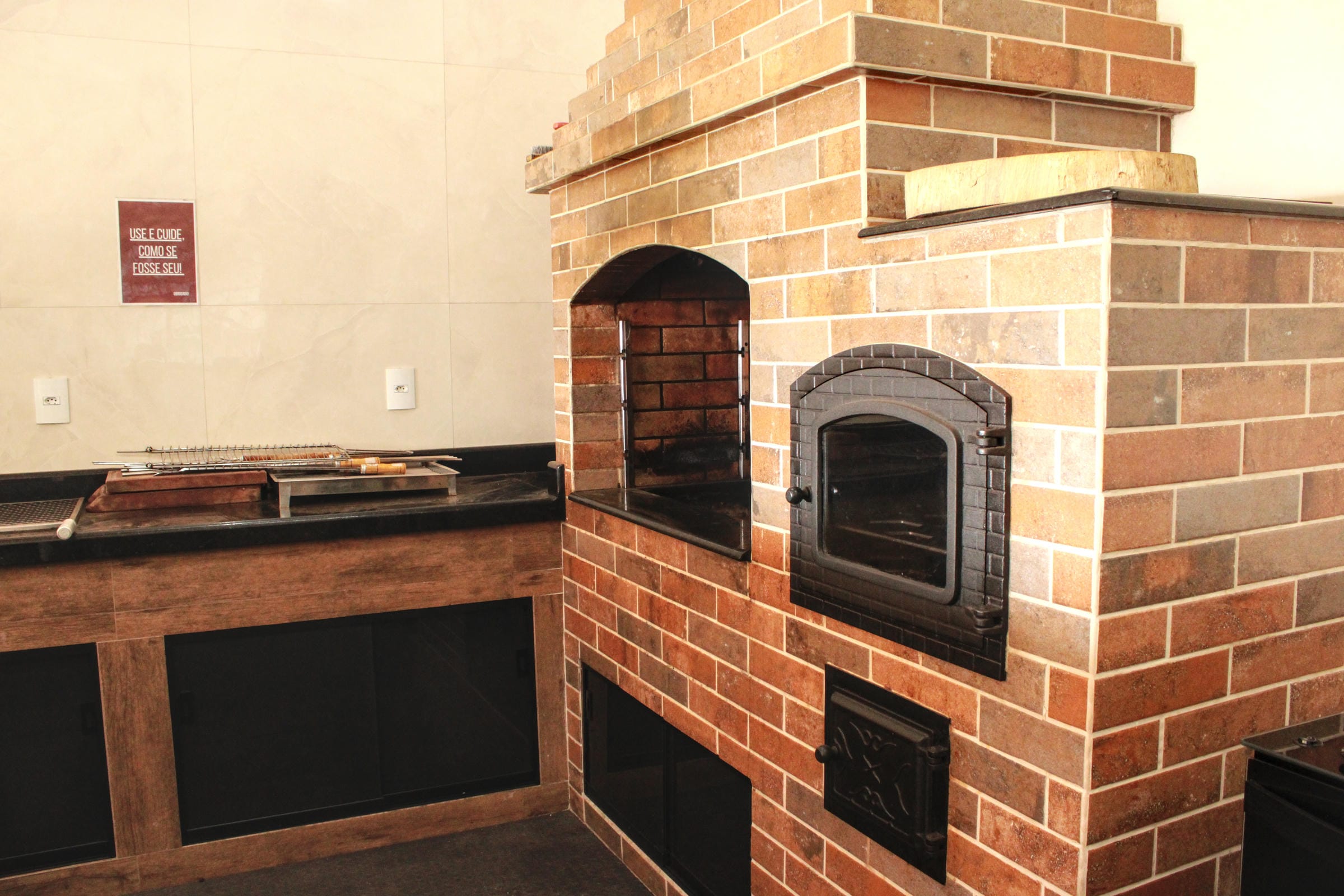 Área gourmet com churrasqueira e forno a lenha;