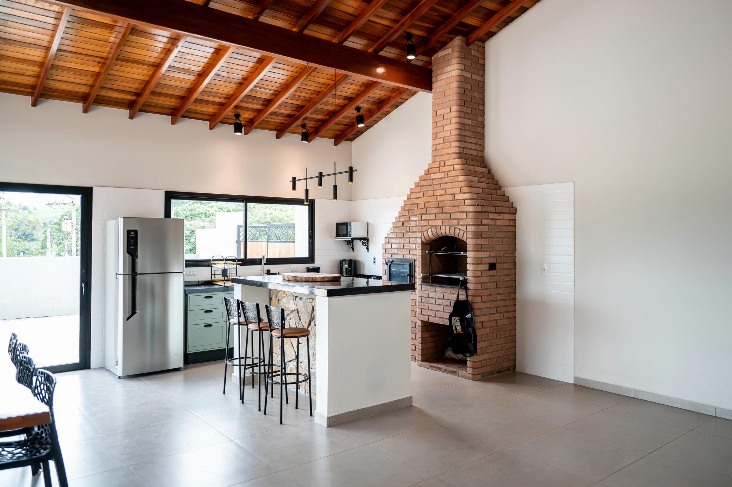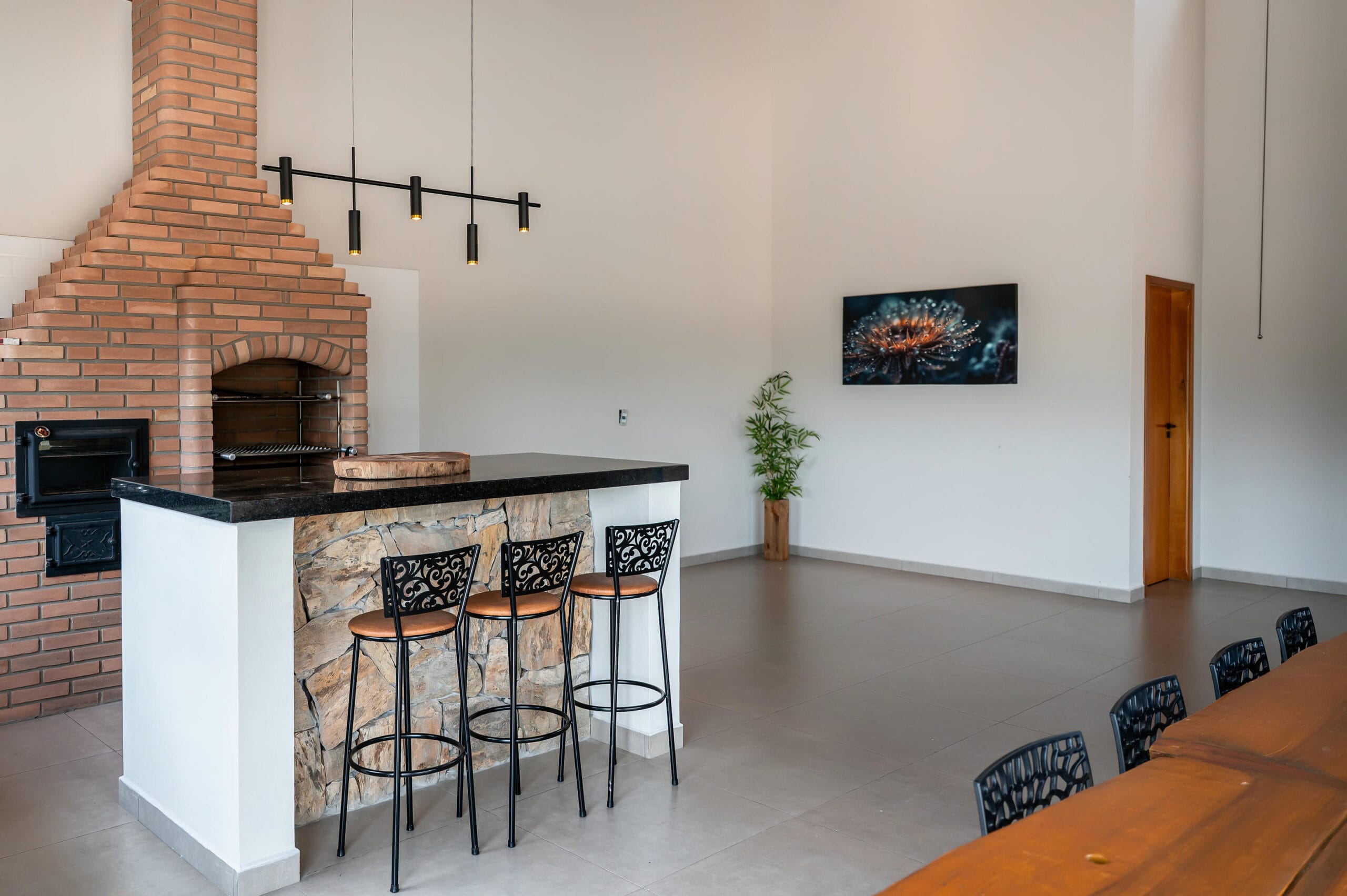O espaço conta com 3 suítes climatizadas 🛏️❄️ e 2 banheiros sociais 🚿, acomodando sua família ou amigos com total conforto. A área gourmet ampla 🍢🔥 possui churrasqueira, forno e fogão a lenha, perfeita para reunir todos em momentos especiais. A chácara também oferece cozinha equipada 🍽️, sala de TV 📺, lavanderia 👕 e Wi-Fi de alta velocidade 📱.